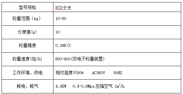 DCS-P-W型煤定量包裝機技術參數: